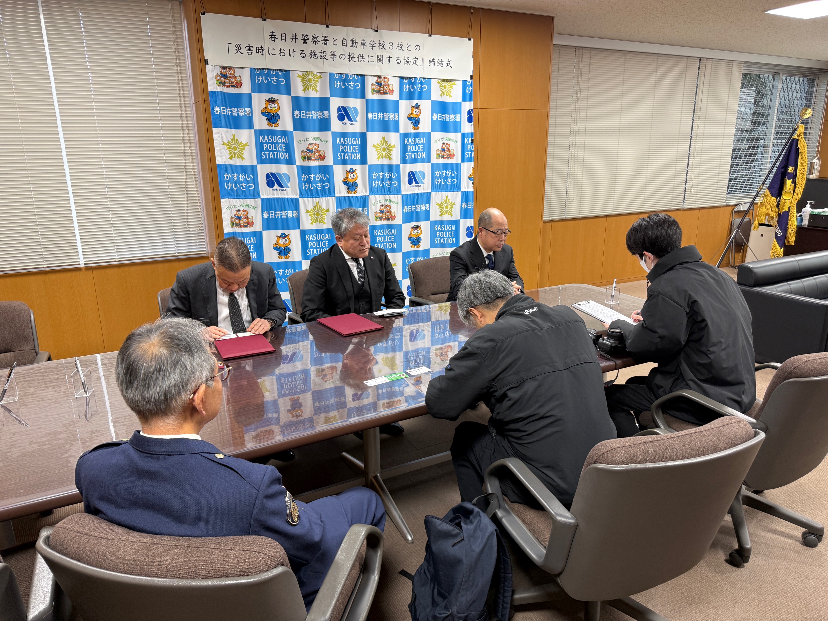 本日、春日井警察署と「災害時における施設等の提供に関する協定」を締結いたしました。