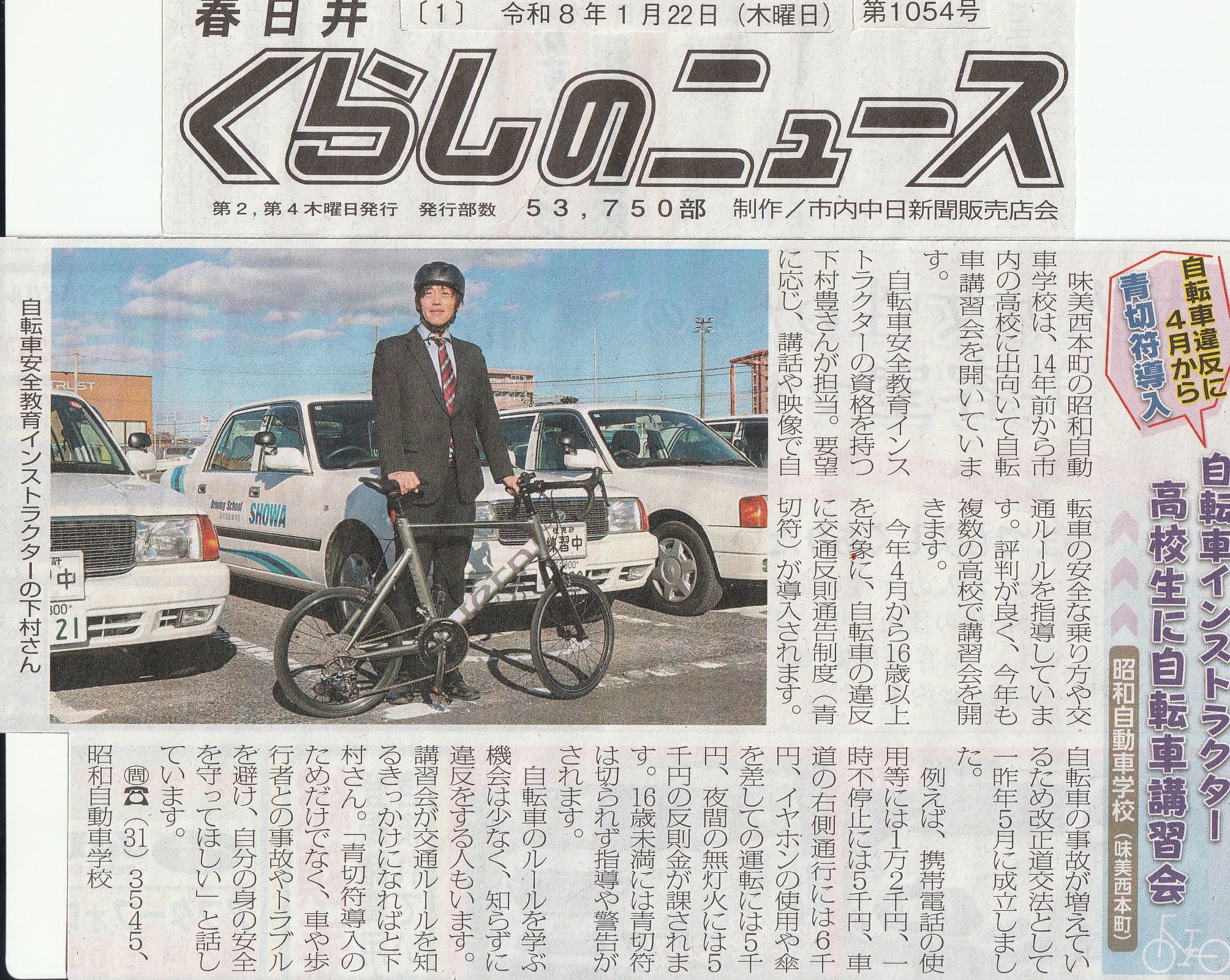 今回の新聞記事や講習会を通して、改めて交通ルールを知り、安全な自転車利用を考えるきっかけになれば幸いです。