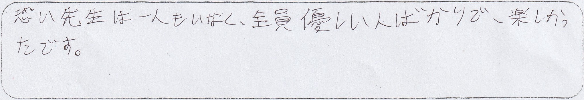 「怖い先生は一人もいなく、全員優しい人ばかりで、楽しかったです。」