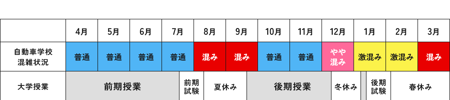 当校での卒業検定の受検可能日は、毎週火、木、土になります。